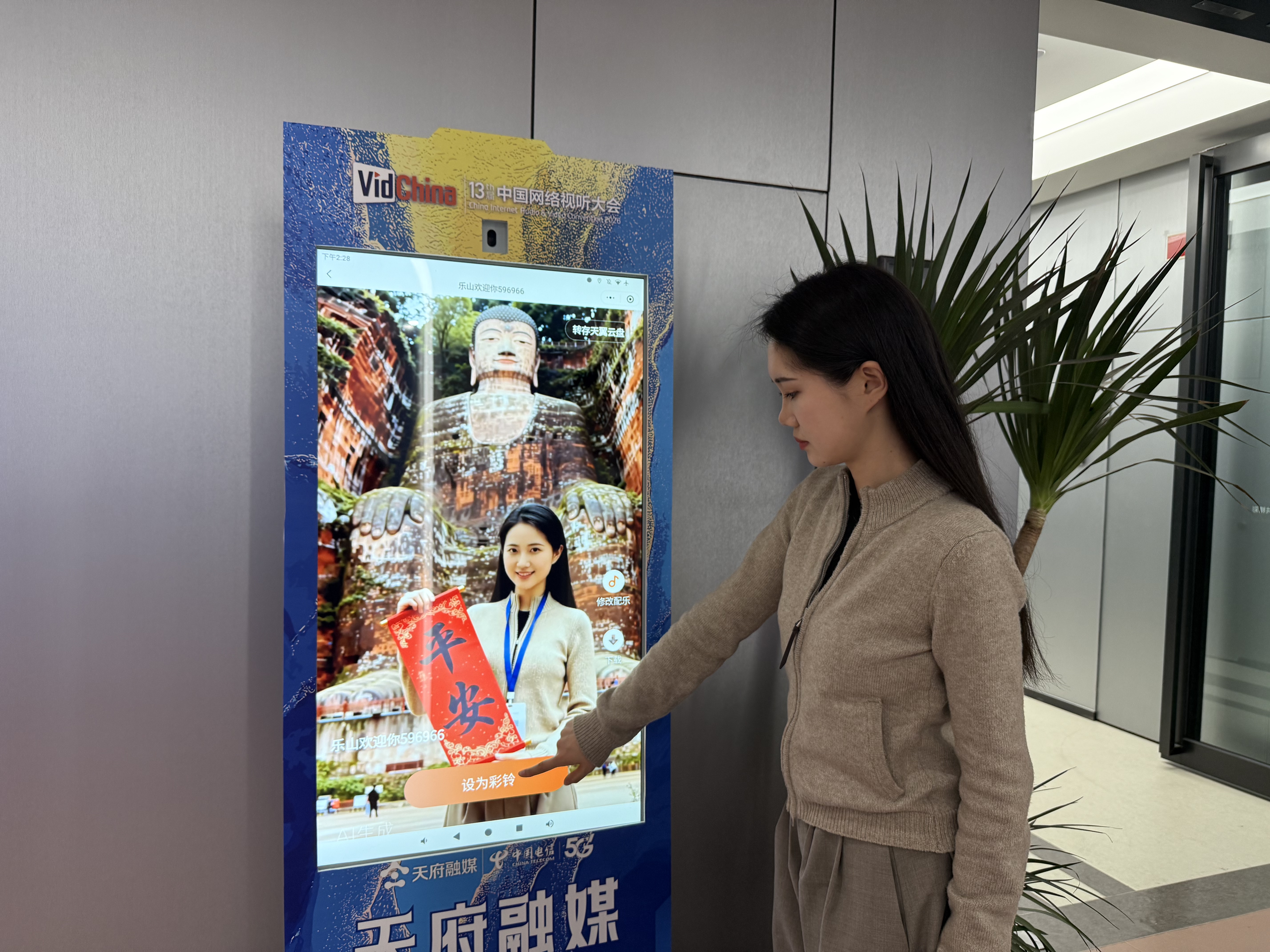 “一键就能和乐山大佛合影,还能生成打卡视频,算是沉浸式体验了名胜建筑。”4月16日,在2026第十三届中国网络视听大会配套活动“天府融媒开放日”现场,天翼智铃体验机前有不少嘉宾争相体验。