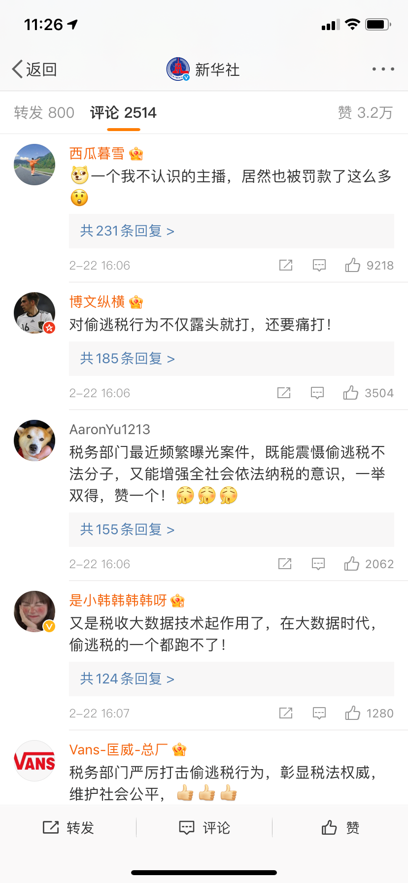 网友们的评论一边倒“早干嘛去了。”“干得好,支持严查。”“希望国家揪出更多违法乱纪的网红。”