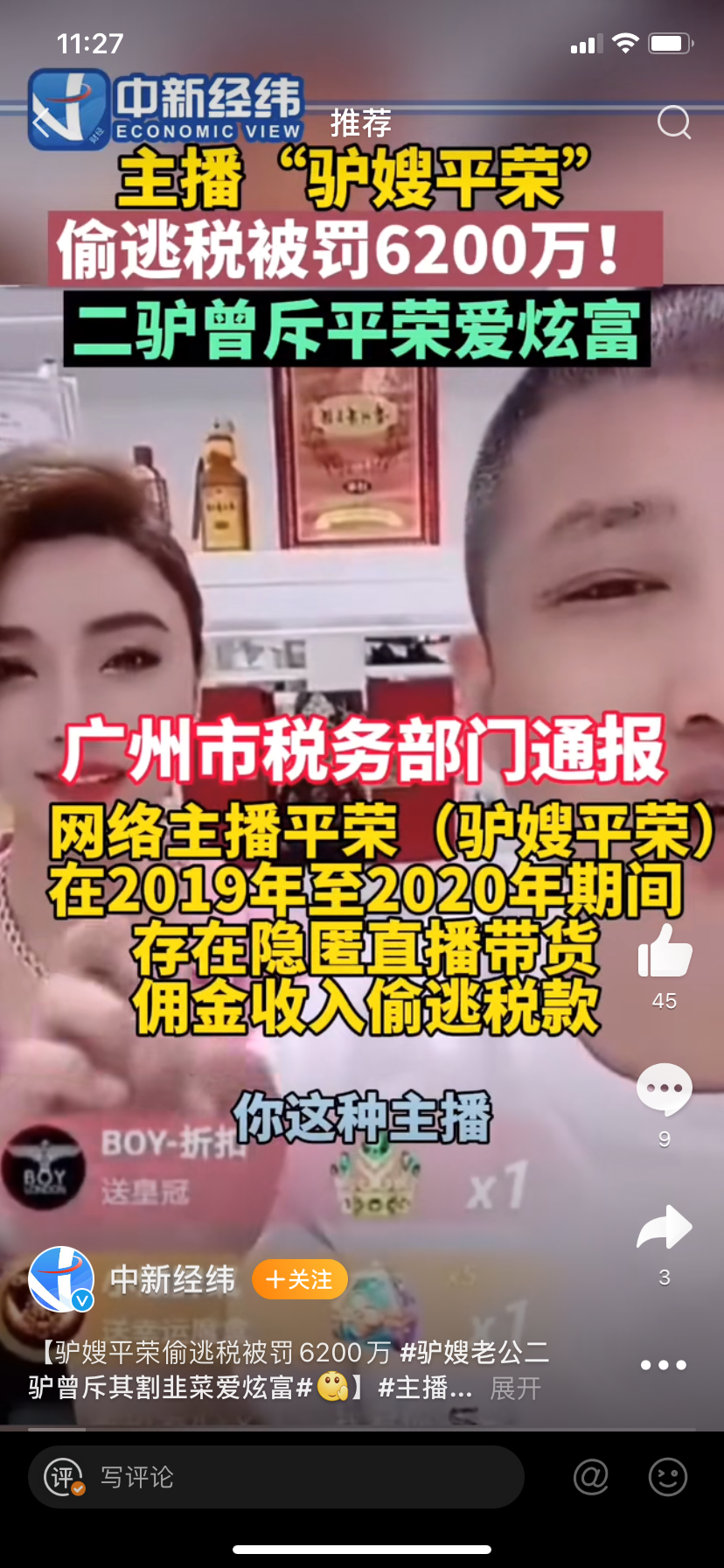 去年12月,同样因偷逃税被处罚的直播带货主播雪梨、林珊珊,到现在还没翻身,平荣又来接棒。看来还有更多网红主播没整明白一件事:不合法经营,依法缴税,侥幸心理只会让你损失更多。